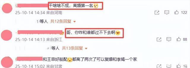 更有甚者用汪峰视角玩梗说: 万万没想到这个赛道你也来跟我卷啊! 真是要笑出腹肌了。 看来继汪峰后,内娱又迎来了一位“离婚专业户”。